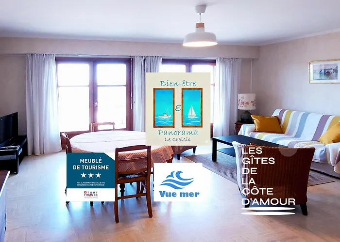 Bien-Etre & Panorama - Les Gites De La Cote D'Amour é um apartamento à beira-mar localizado em Le Croisic, 25 minutos de distância de Croisic Golf Club. A propriedade oferece cozinha totalmente equipada com microondas e geladeira.
